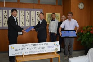 9月30日 富士宮市教育委員会に対して、夏休み自由研究作品展 富士宮LC奨励賞