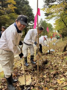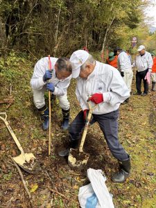 11月1日(土)、西臼塚駐車場に集合し、ライオンズクラブメンバーで登山道周辺に桜の苗木を植樹しました。 鹿による食害を防ぐため、注意深く植え付けを行い、最後に雄大な富士山を背景に全員で記念撮影をしました。